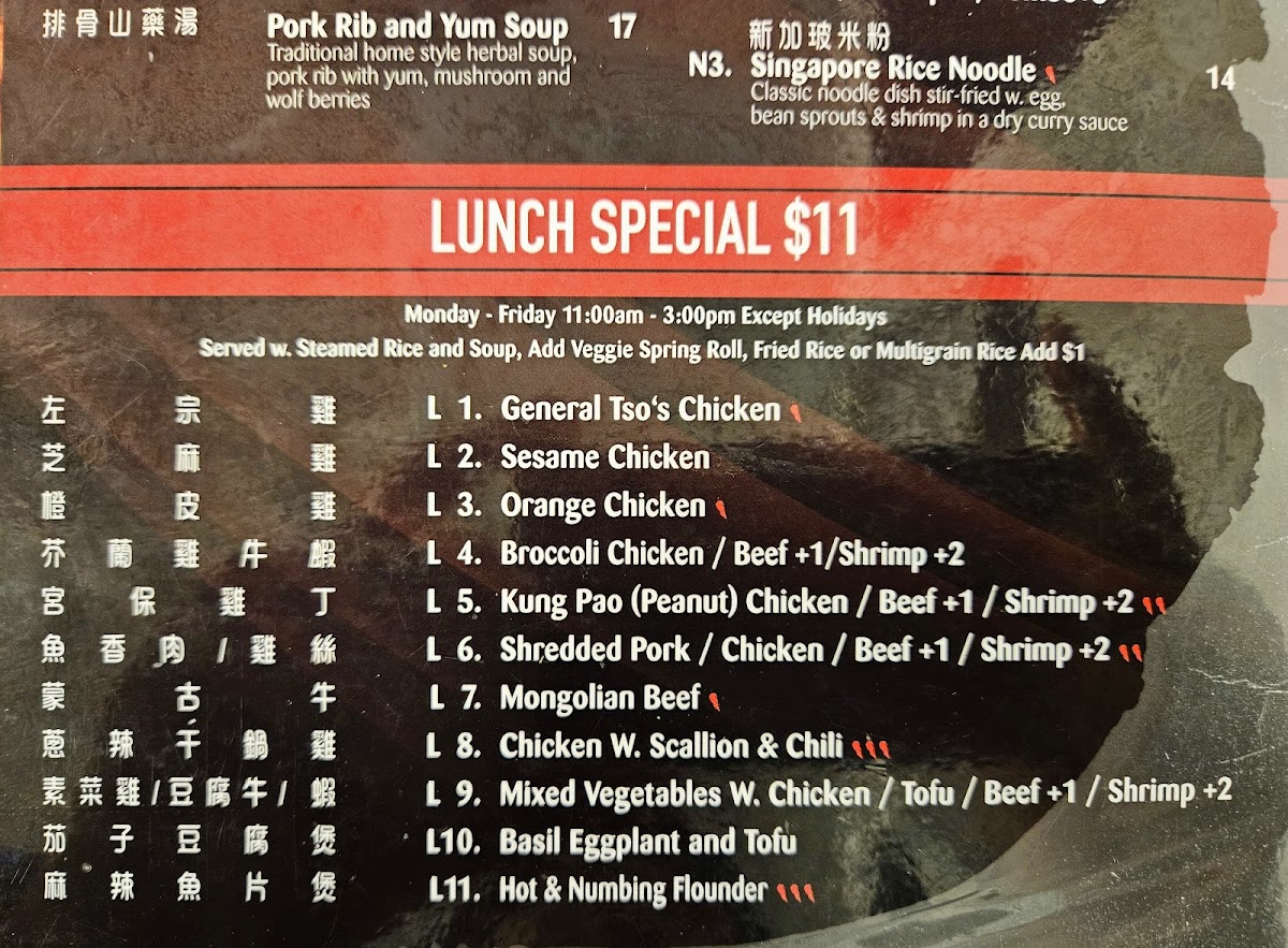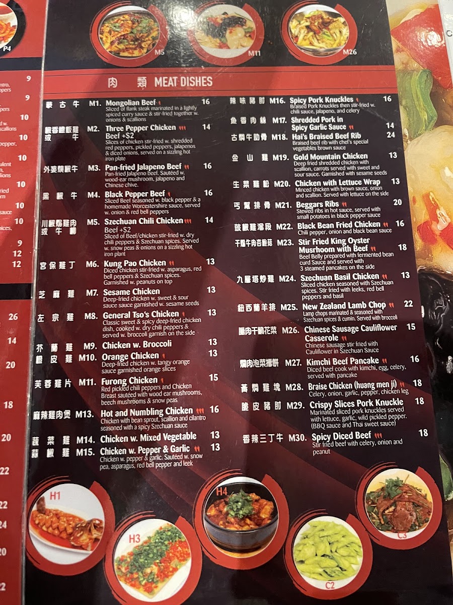 Slices of beef or chicken stir-fried with chili peppers and Szechuan spices. Served with snow peas and onions on sizzling iron plate.