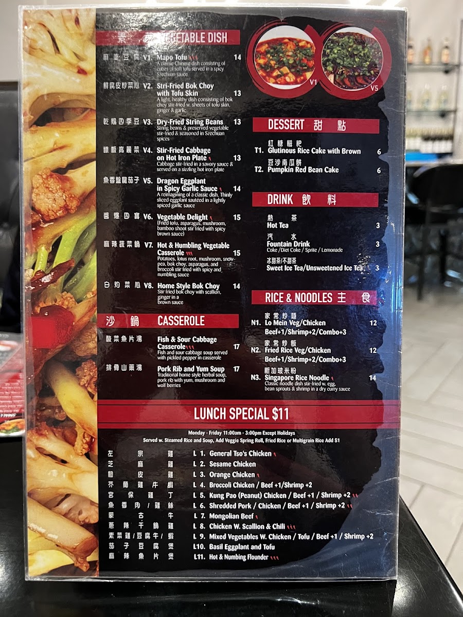 Hot and numbing flounder stone pot served in a spicy Szechuan sauce.